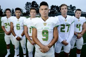 Members of the St. Joseph High School football team gather during a photo shoot at Lee Central Coast Newspapers’ Media Day in Santa Maria on Saturday.